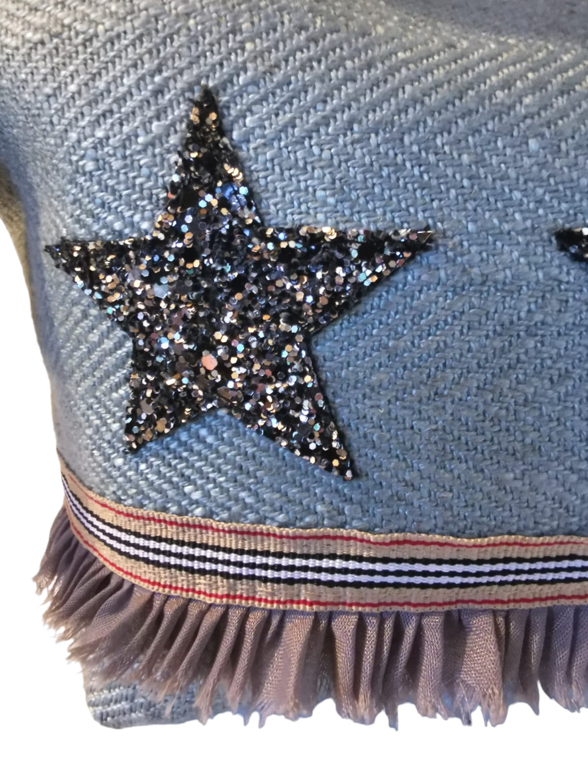 Sac bandoulière en lin à chevrons bleu glacier & étoiles glitter