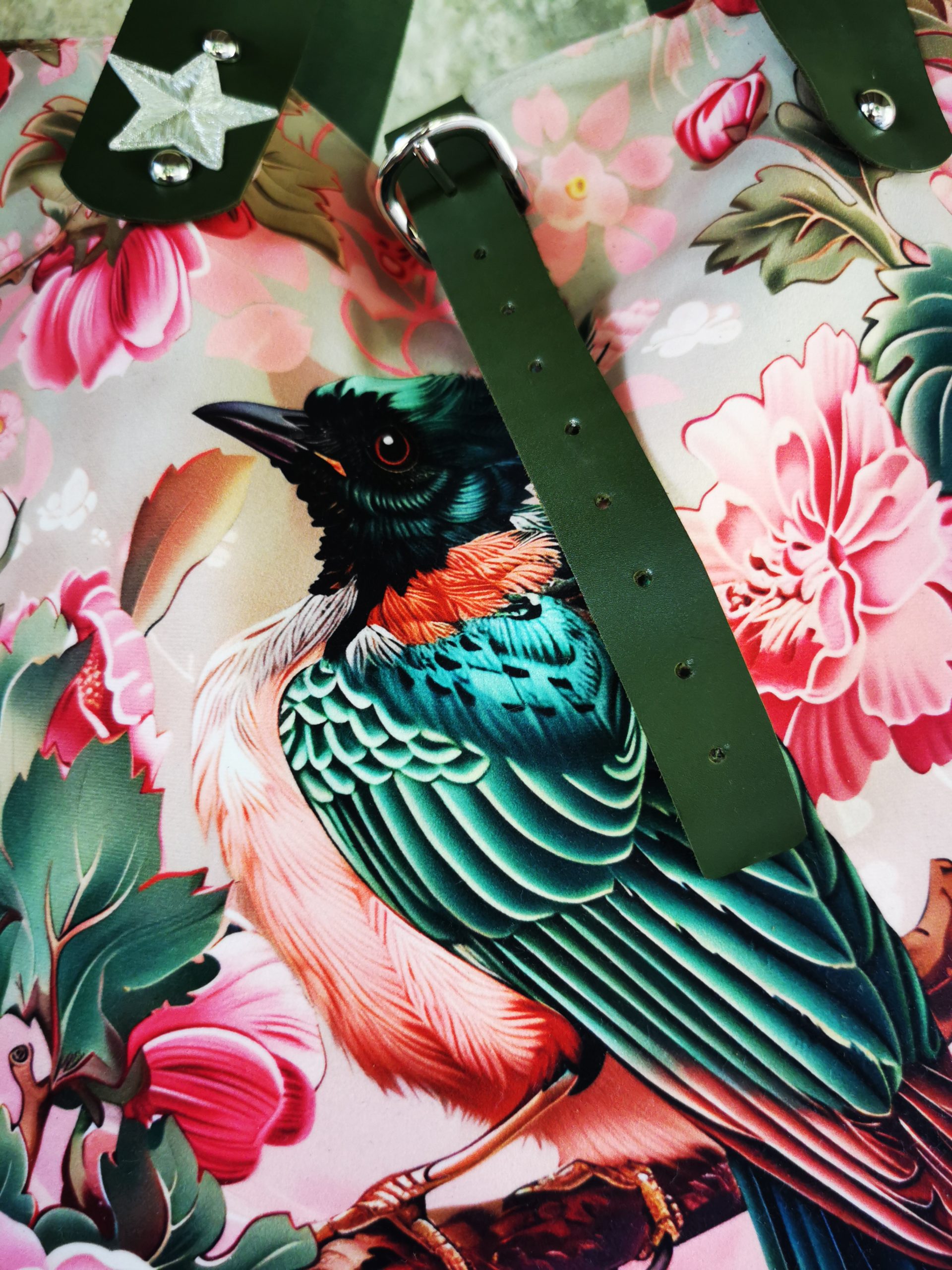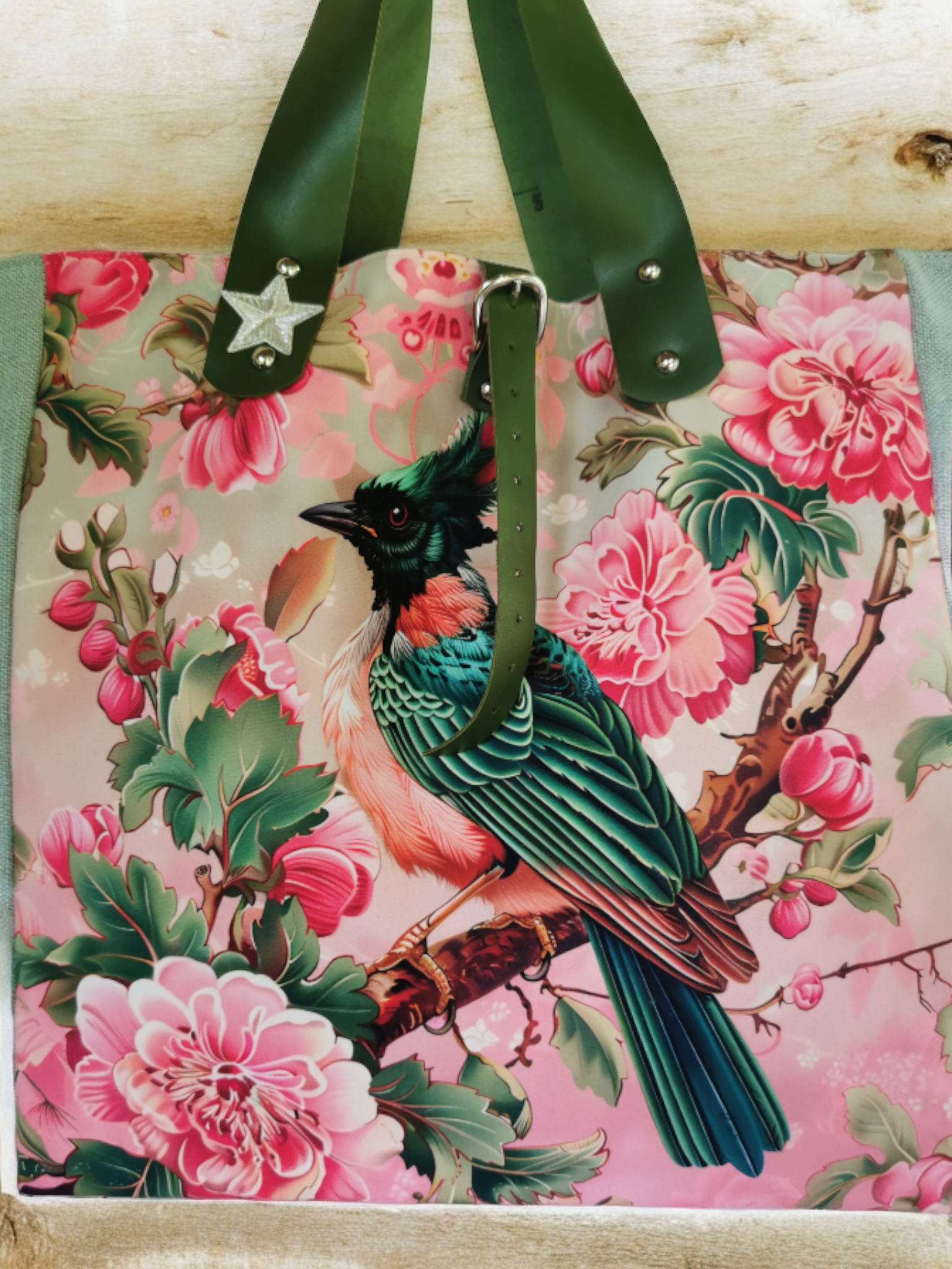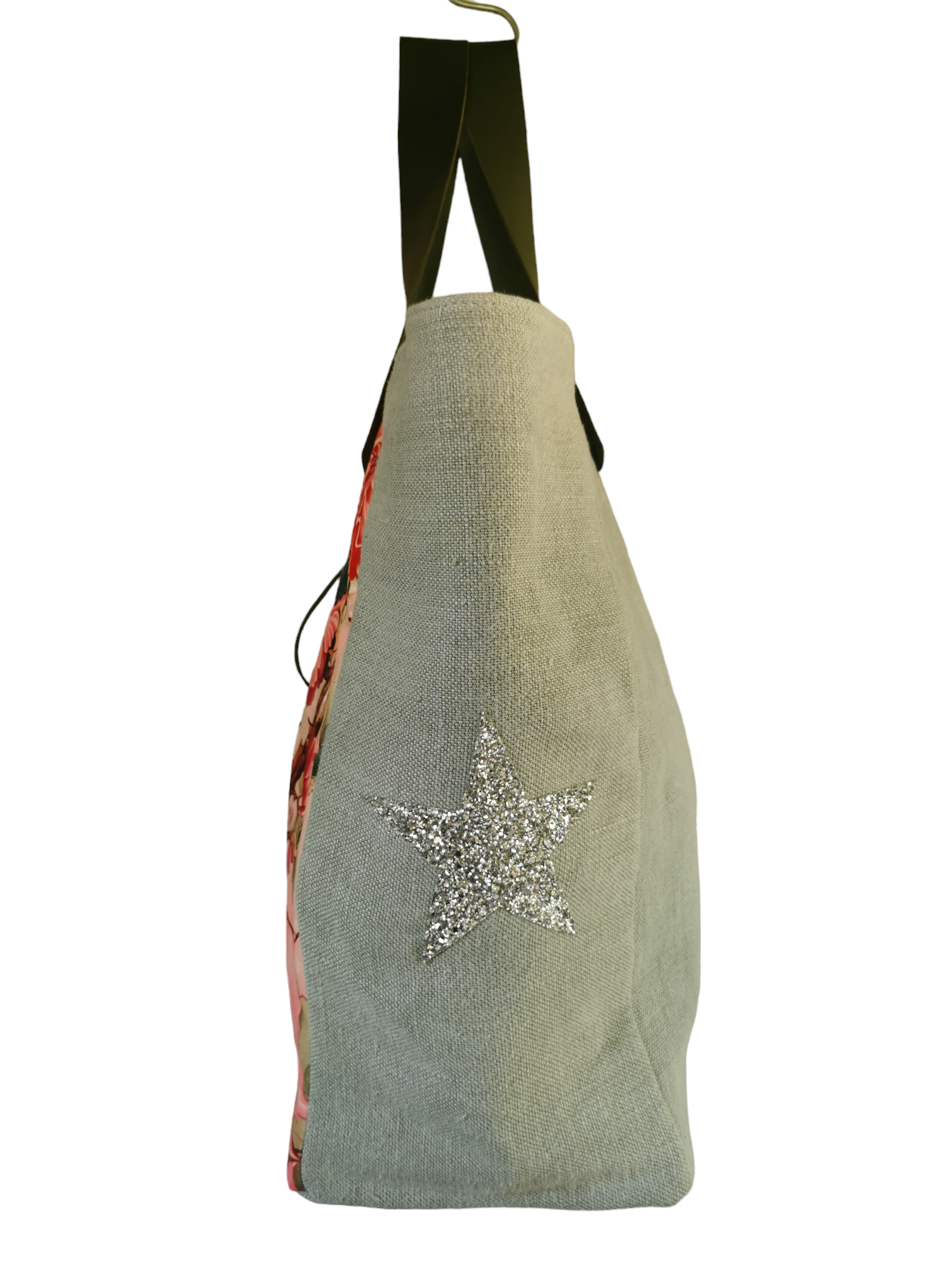 Une étoile léopard et cousue sur le côté gauche et une dentelle agrémente le bas du sac